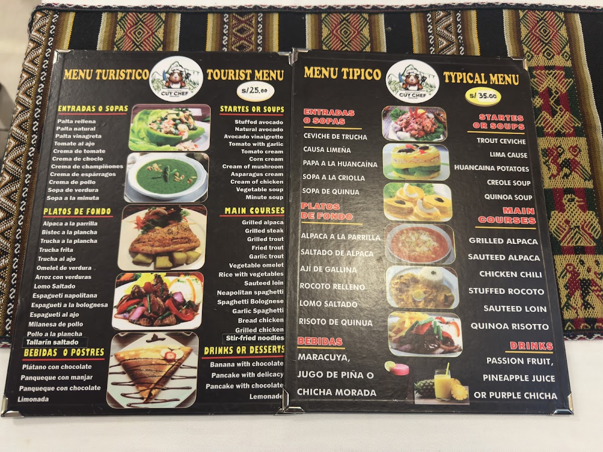 Cuy Chef, situated in the heart of Aguas Calientes, Peru, offers an inviting blend of exceptional cuisine and warm hospitality. Renowned for its diverse menu, diners rave about standout dishes like carneasa, pizzas, and the delicious Alpaca a la Parrilla. Guests appreciate the reasonable prices, making it an excellent choice for both tourists and locals. The welcoming staff ensures a relaxed atmosphere, perfect for enjoying meals while soaking in the vibrant street life. With delightful music and engaging games, Cuy Chef promises not just good food but also memorable experiences. It's a must-visit for any culinary explorer!