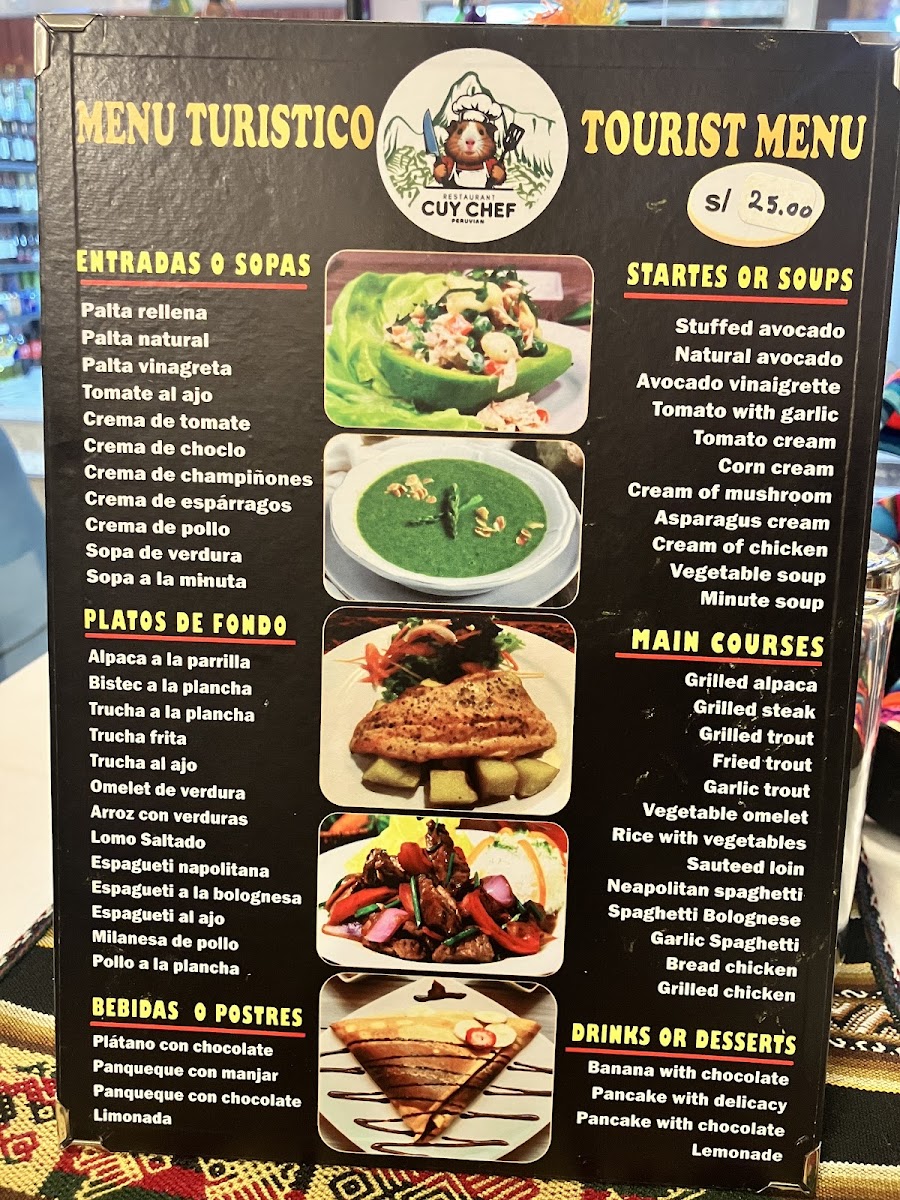 “ Good tourist prices on the menu. 50 soles for 2 people for 3 courses is very good value. And the food was good for that price. ”